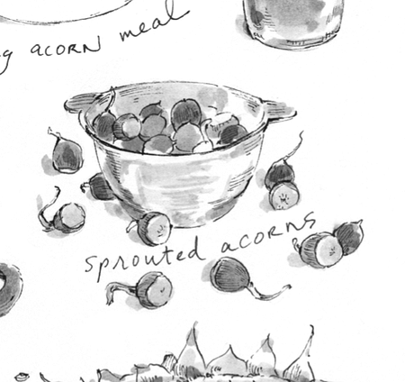 Acorns, the nuts of oak trees, are edible and in fact have been a critical source of nutrients for many native peoples in North America and elsewhere. In mainstream culture, however, acorns are largely ignored as a food for human consumption.